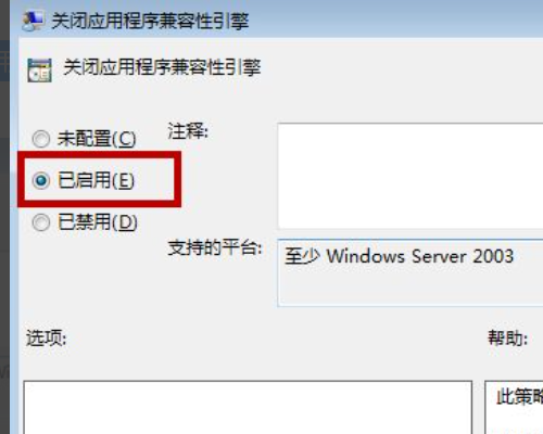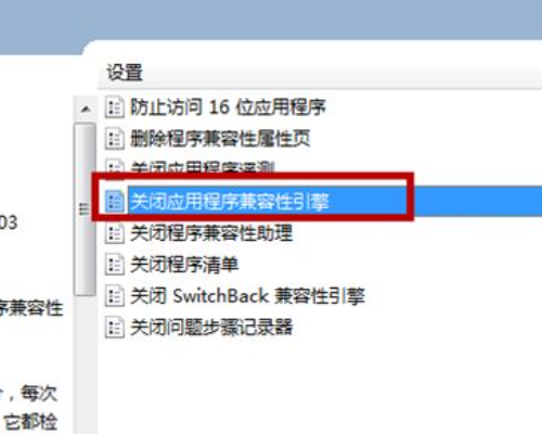 之后我们鼠标双击关闭应用程序兼容性引擎,即可打开设置窗口,如图所示。