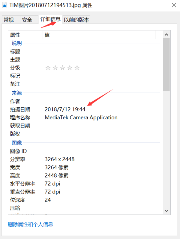 手机照片传到电脑后,照片属性里不显示拍摄日期了,空白的?