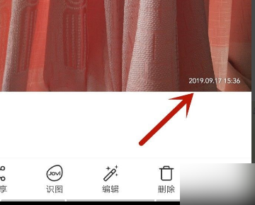 1。我们首先以一张手机拍摄的照片为例,照片水印显示了拍摄时间
