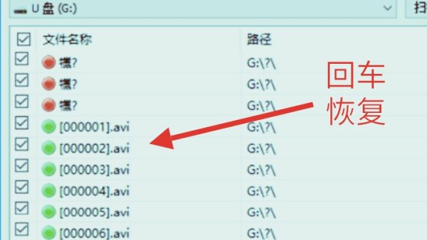 5.扫描后,所有乱码文件将显示在下面。 此时,单击上方的[文件名]进行检查。