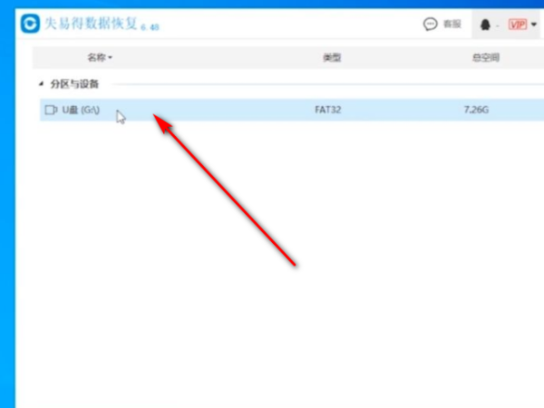 2.等待打开恢复软件,然后直接单击以选择要扫描和恢复的[U盘]。