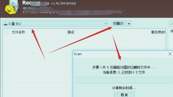3.选择U盘后,直接单击[扫描],将弹出一个扫描对话框。