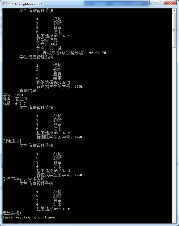 用C语言编程实现一个简单的学生成绩管理系统