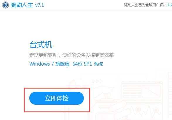 一、打开驱动人生软件,主界面内点击“立即体检”。