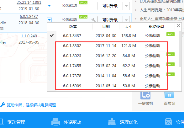 三、在打开的驱动版本列表内选择一个跟现版本不同的驱动。