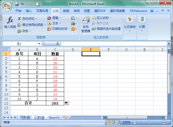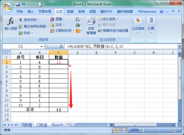 2、之后是要在日数据表格中将两个表中项目(示例,可设为其他条件)所对应的数据自动填写