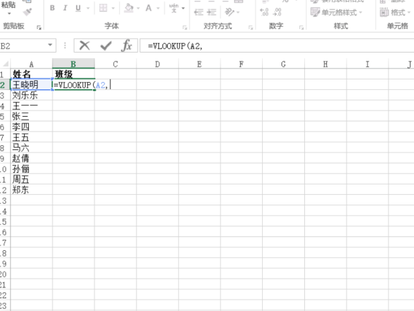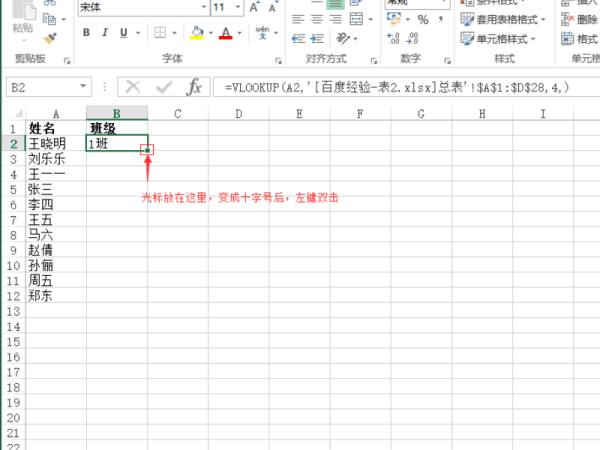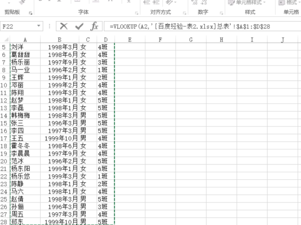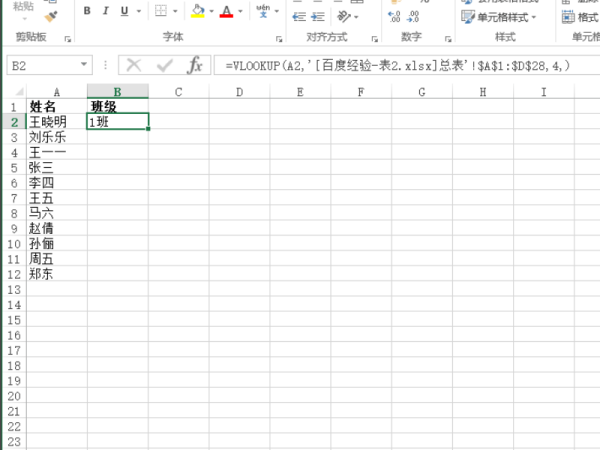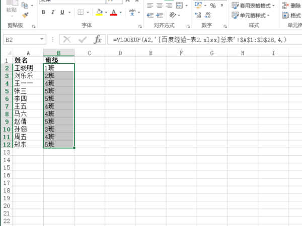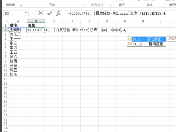 6、要返回的是表2中第四列的班级信息,所以在公式中再输入“4,”(逗号是英文的)。