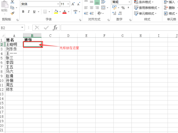 2、把光标定位在需要展示数据的单元格中,如下图所示。