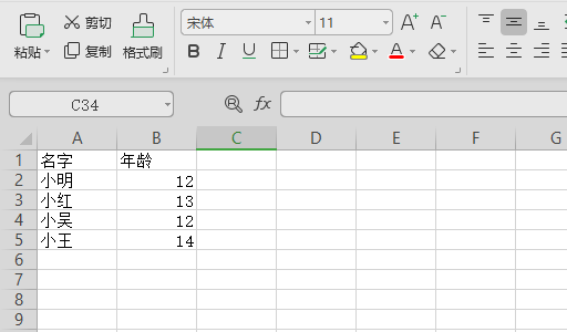 2、此图为表格2的内容,要把表格2中的年龄给填充到表格1。