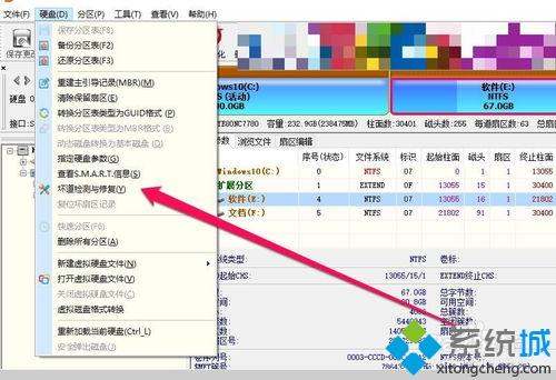 2、硬盘检测界面选择,需要检测的硬盘分区。