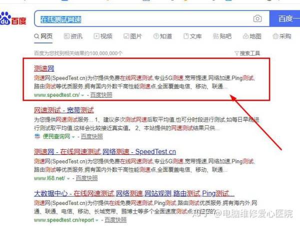 (1) 在浏览器百度搜索在线测试网速