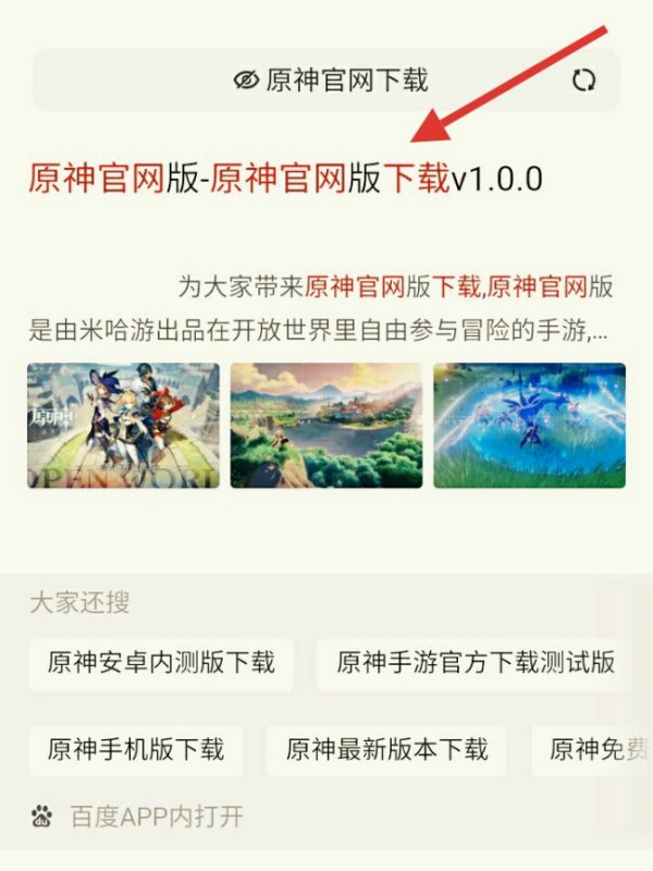 1、直接浏览器搜索原神官网下载,点击图示链接进入。