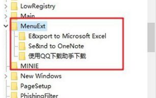 4、在展开的MenuExt注册表项后,其下的注册表项就是对应的右键菜单项。