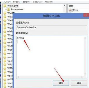 6、这时会弹出一个对话框,将里面信息改为RPCSS,然后点击确定。