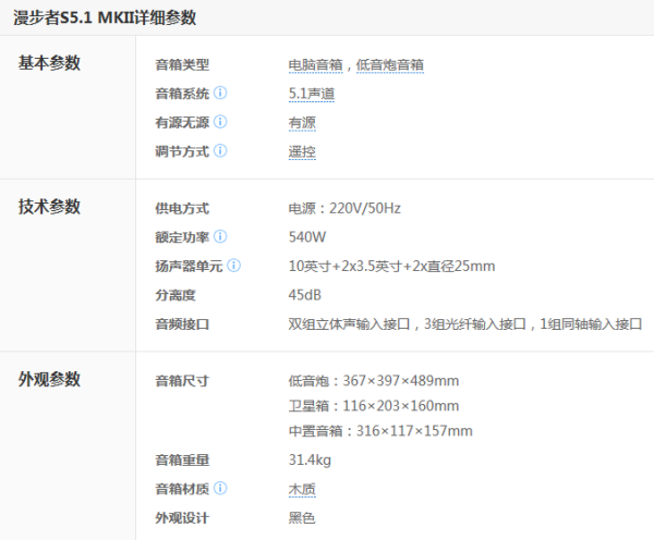 漫步者S5.1MKII是一款非常棒的5.1声道音箱,适合搭配数字化家庭影院。