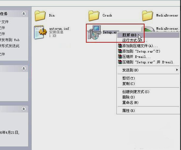 1、将CAD2007的压缩包解压,然后选中Setup.exe文件,在右键菜单中选择“打开”点击。
