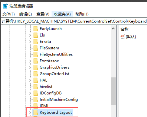 2、依次展开HKEY_LOCAL_MACHINE\SYSTEM\CurrentControlSet\Control\Keyboard Layout。