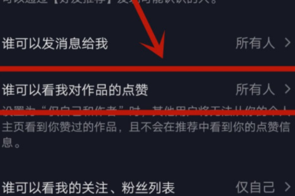 5、在隐私设置界面中,找到谁可以看我对作品的点赞选项,点击进入。