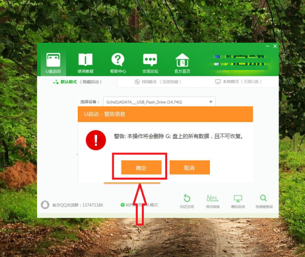 第三步、点击开始制作,此时,弹出的警告窗口中告知会清除u盘上的所有数据,请确认u盘中数据是否另行备份,确认完成后点击“确定”;