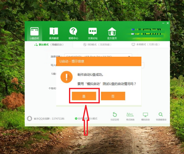 第五步、制作成功后我们点击“是”对制作完成的u盘启动盘进行模拟启动测试;