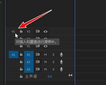 3、接着将V1移动到要导入的画面轨道前并点亮。