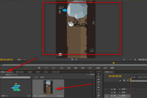 6、其实,只需点击左下方的项目,再双击里面的视频,即可显示了。