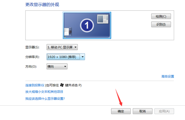 5、把分辨率调到最高,修改好后,点击“确定”即可完成屏幕分辨率的设置。