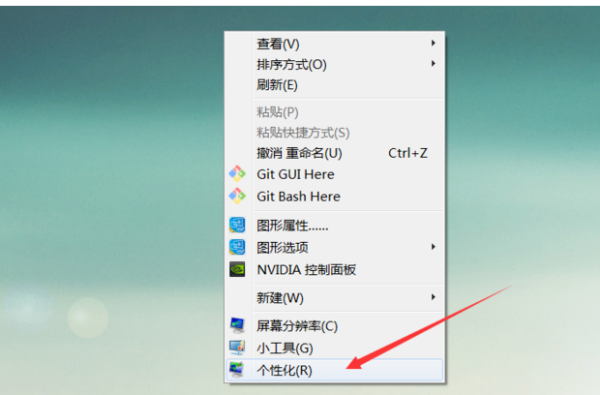 1、在桌面空白处点击鼠标右键,点击“个性化”。