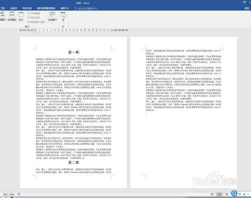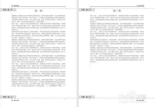 将word文档的文字录入好,如下图所示,假设要对第一章和第二章分别设置不同的页眉和页脚。