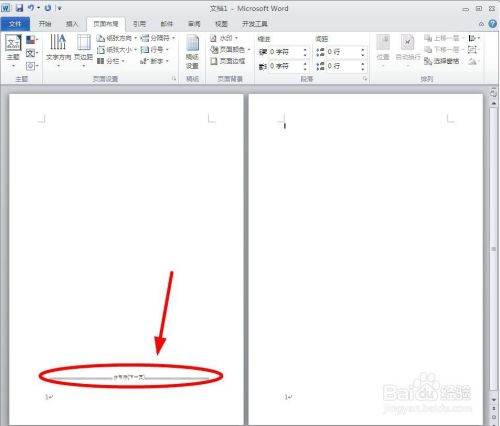 我们把光标放在第一页末尾或者第二页开始的位置,在功能菜单中选择“页面布局”,单击其下的“分隔符”