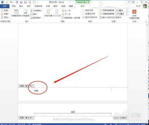 页脚的操作方式与页眉相同,设置完成后,如下图所示,每页的页眉和页脚都不相同了。