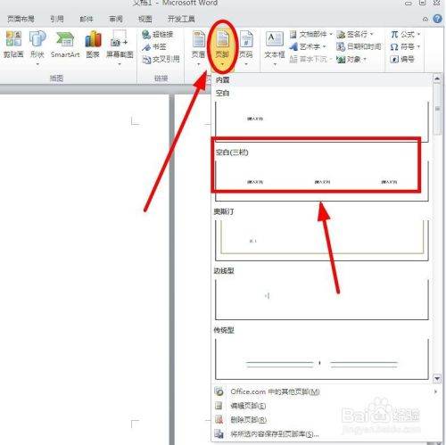 在插入内容中选择“页脚”单击,在下拉菜单中选择一种页脚类型
