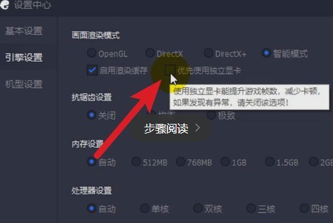 4、切换回引擎设置中,将使用独立显卡选项勾上。