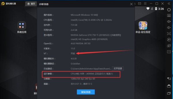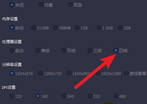 5、将处理器设置为4核后,保存设置重新启动腾讯手游助手就好了。