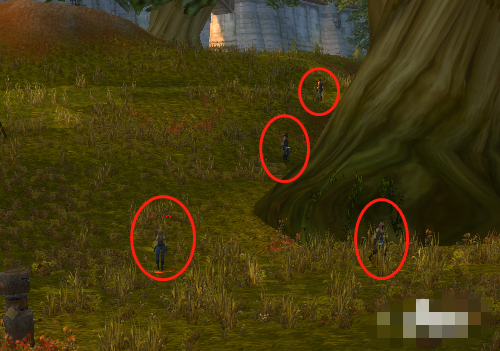 5、但是,只要进入距离目标20码的距离,就会自动显示目标的血条,而且不需要选中对方为目标。