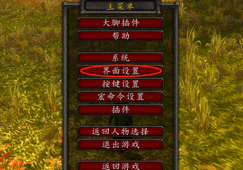 1、在游戏界面,按Esc键,调出主菜单,点击“界面设置”;