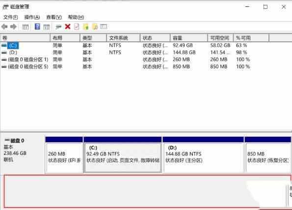 2、打开磁盘管理之后,查看是否有两个硬盘,还是只剩下一个固态硬盘了。