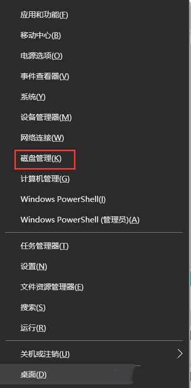 1、首先右键点击开始菜单 ,然后打开“磁盘管理”选项。