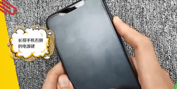 第3步、接着长按手机右侧的电源键,如下图所示: