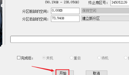 4、填写磁盘容量后,点击开始,完成创建新分区。