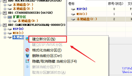 以DiskGenius分区工具为例,创建新分区步骤如下所示: