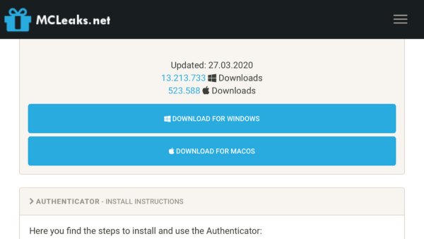 首先打开mcleaks.net点authenticator