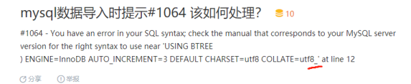 在MYSQL导入数据时出错,提示如下:请问是什么原因呢?