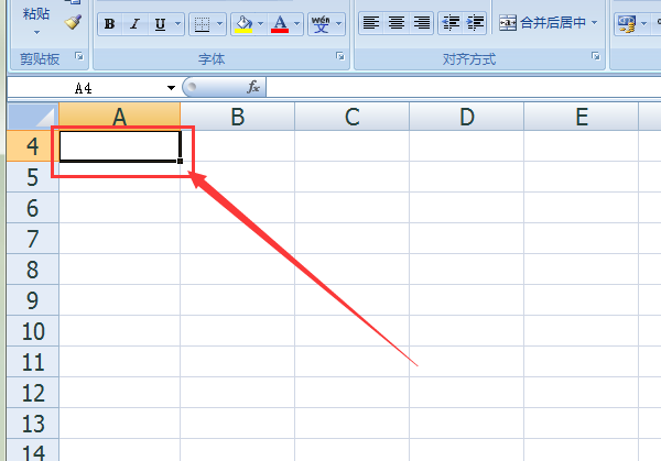 六、按下四次下方向键,能够看到,单元格没有向下选择,而是固定在A4单元格上,页面却向下翻动了四行。