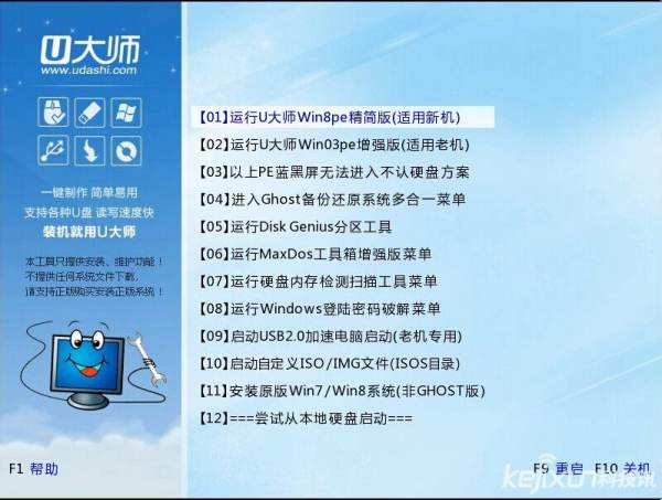 1.打开电脑就会自动进入U大师U盘启动盘PE系统选择菜单。