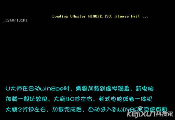 3.选择运行精简版后会将pe系统加载到虚拟磁盘,加载完会自动进入Win8pe系统的桌面