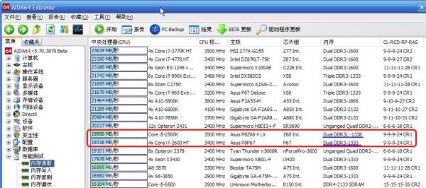 4、从图中两种DDR3的读取速率得分比较,DDR3L 1333条子为19956MB/S,DDR3 1333条子为19316MB/S,差距640MB/S。性能相差0.03%,可忽略不计;