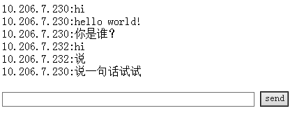 ';$(messageItem).appendTo('#message-list');// 把滚动条滚动到底部$(".chat-content-container").scrollTop($(".chat-content-container")[0].scrollHeight);}到这步,简单的网页聊天室就完成了,你可以多开几个窗口或在局域网中邀请小伙伴们来一起测试。