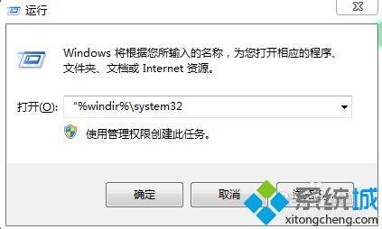 4、在不经意间删除了电脑的文件,会造成电脑不断重启。我们就需要把这个文件添加进去,打开“运行”,在运行框输入“%windir%\system32”,点击回车键。