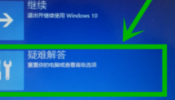 3、进入【安全模式】后,在【选择一个选项】界面,选择【疑难解答】